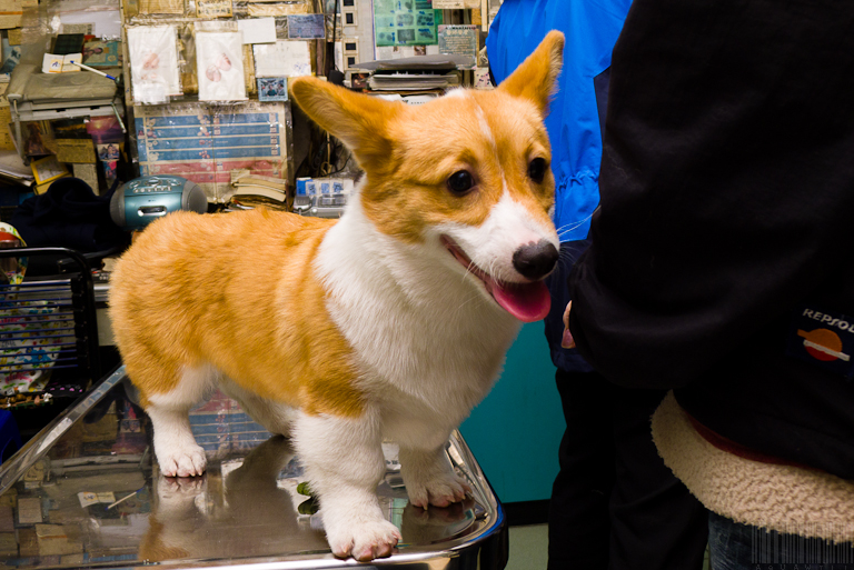 今天早上還有一個病患是來打疫苗的女生小科基!非常可愛!不過科基犬脾氣並不好,膽量也挺大的。才五個月大的小科基就敢從診療台上面跳下去喔!
