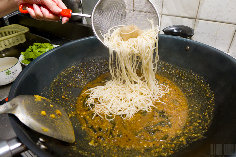 又香又辣的緬甸式關廟麵,連怕辣的老妹都覺得太好吃了!這樣就解決了四人份的晚餐啦!
